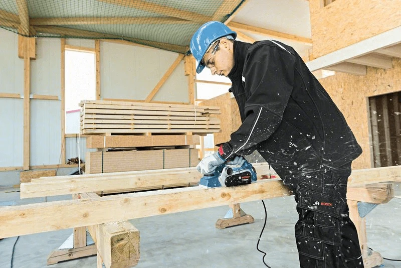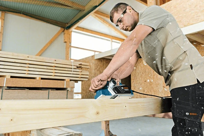Hobel GHO 26-82 D. Komfortables Arbeiten durch beidseitigen Spanauswurf und Spantiefeneinstellung bis 2,6 mm. Kraftvoller 710-W-Motor für Schnitttiefen bis 2,6 mm. Stabile, plane Alumiuiumfussplatte für beste Hobelergebnisse. Spanauswurf wahlweise links oder rechts. Sechskantstiftschlüssel SW 2,5 (ET-Nr. 1 907 950 003), Handwerkerkoffer, Stoffstaubbeutel, Parallelanschlag