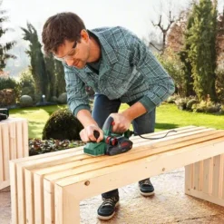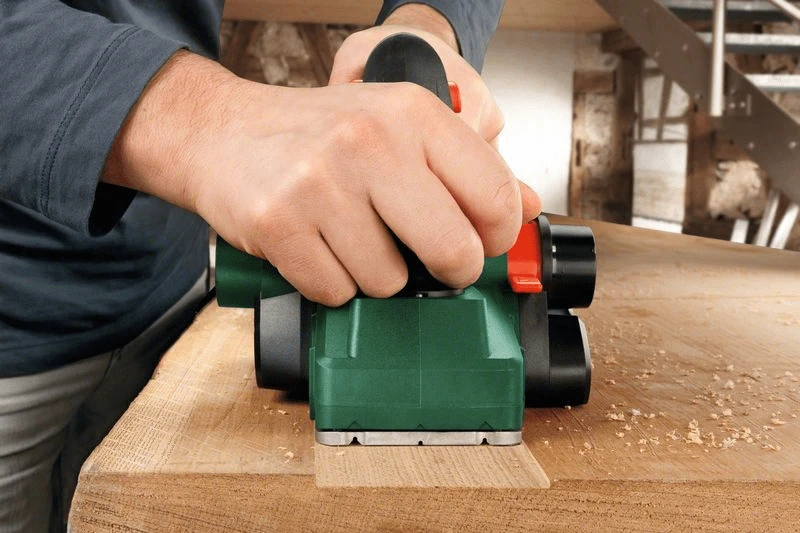 Hobel PHO 2000. Schnell, präzise und effizient. Kompakter und leistungsstarker 680-Watt-Handhobel für anspruchsvolle Anwendungen bis 2 mm Spantiefe. Zweiseitiger Spanauswurf zum Anschluss an Staubsack oder Staubsauger – Auswurf der Späne je nach Arbeitssituation rechts oder links. Patentiertes Woodrazor-Messersystem – leichtes Hobeln ohne Kraftaufwand. Einfachster und schnellster Messerwechsel und hohe Oberflächengüte. Spanauswurfgebläse verhindert Spänestau – für unterbrechungsfreies Arbeiten. 3 V-Nuten zum präzisen Abkanten von Ecken. Automatisch ausklappender Parkschuh – verhindert Beschädigung des Werkstücks oder des Hobelmessers bei Ablegen des Hobels. Falztiefe bis 8 mm. Kombinierter Führungs- und Spantiefeneinstellknopf für griffsichere Führung und stufenlose Verstellung. Mit verbesserter Hobeltiefeneinstellung sowie Schlüssel- und Messer-Depot. Beste Ergonomie durch optimierte Position des für Links- und Rechtshänder geeigneten Handgriffs mit Softgrip. Hartmetallwendehobelmesser (2 608 635 376), Sechskantstiftschlüssel