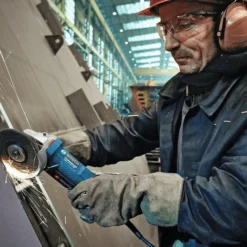 Winkelschleifer GWS 15-125 CIEP. Die neue Reihe von PROtection-Winkelschleifern: Robust, perfekte Handhabung und hervorragender Anwenderschutz. Überragender Anwenderschutz: Der PROtection-Schalter schaltet die Maschine unmittelbar nach Loslassen ab. Hervorragende Kontrolle über das Gerät, dank der Möglichkeit, den Schalter an vielen verschiedenen Stellen zu betätigen. Robust und kraftvoll: Starke und ausdauernde Motoren mit Constant-Electronic für einen schnellen und effizienten Arbeitsfortschritt. Führender Anwenderschutz durch KickBack Control und Wiederanlaufschutz. Lange Lebensdauer durch Motoren mit direkter Motorkühlung, Überlastschutz und langer Kohlebürstenstandzeit. 6-stufige Drehzahlvorwahl für unterschiedliche Materialien. Sanftanlauf und Anlaufstrombegrenzung. Vibration Control-Zusatzhandgriff mit 40 Prozent Vibrationsreduktion für ermüdungsarmes Arbeiten (EN 60745). Verbesserte Kabeltülle erhöht die Lebensdauer des Kabels. Werkzeuglos verstellbare Schutzhaube – schnell und einfach verstellbar. Schützt zuverlässig. Getriebekopf in 90 Grad-Schritten drehbar. Aufnahmeflansch (ET-Nr. 2 605 703 014), Spannmutter (1 603 340 040), Schutzhaube (1 605 510 365), Zweilochschlüssel (1 607 950 043), Zusatzhandgriff Vibration Control (2 602 025 171)
