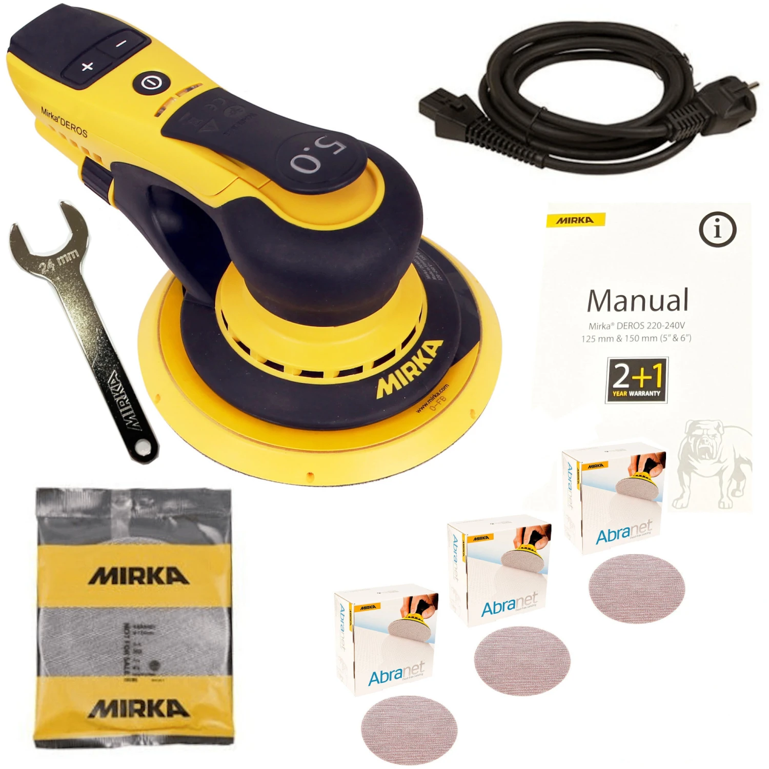 Exzenterschleifer Elektro Mirka DEROS 650CV Set + 150 Abranet Scheiben Gratis