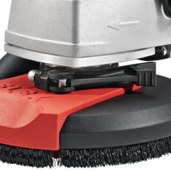 - Schutzhaube: mit schwenkbarem Segment zum Schleifen bis an die Wand und höhenverstellbar zur Anpassung an die jeweilige Scheibenhöhe zur optimalen Staubabsaugung