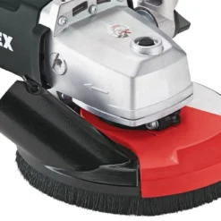 - Schutzhaube: mit schwenkbarem Segment zum Schleifen bis an die Wand und höhenverstellbar zur Anpassung an die jeweilige Scheibenhöhe zur optimalen Staubabsaugung