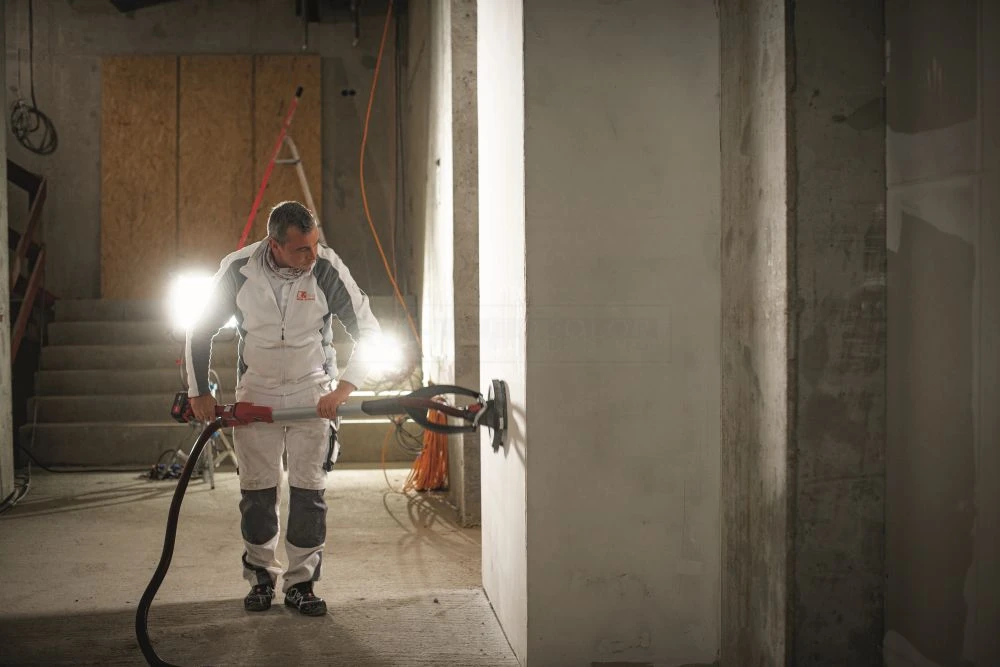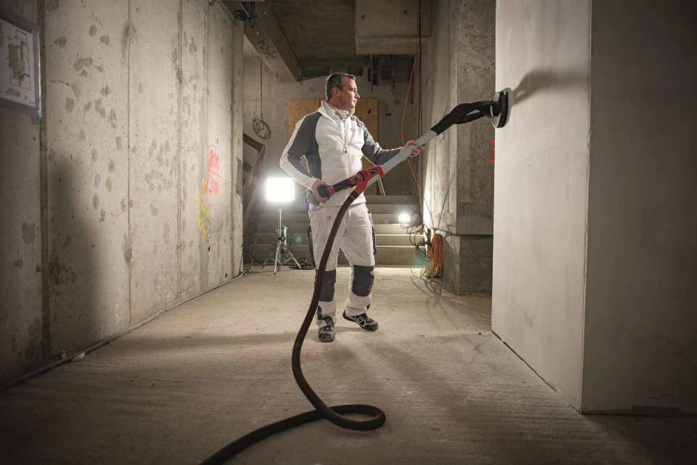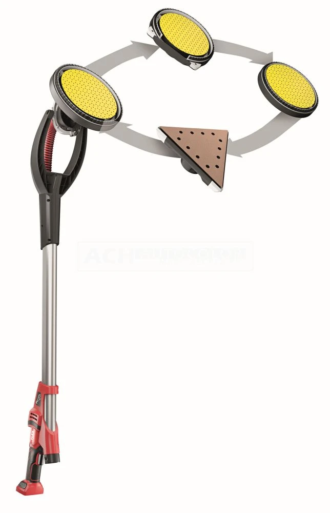 - Kardanisch gelagerter Schleifkopf sorgt für hohe Flexibilität und optimale Anpassung beim Schleifen an Wänden und Decken.
