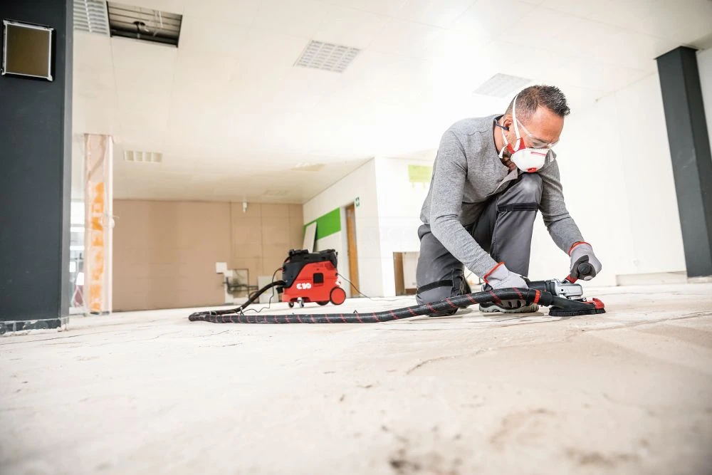 - Staubabsaugung: schützt vor Staubbelästigung, senkt den Scheibenverschleiß, hält die Betonporen für die Neubeschichtung offen
