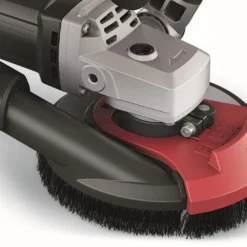 - Schutzhaube: mit schwenkbarem Segment zum Schleifen bis an die Wand und höhenverstellbar zur Anpassung an die jeweilige Scheibenhöhe zur optimalen Staubabsaugung