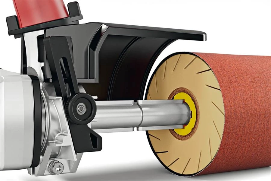 – Werkzeugloser Schleifwerkzeugwechsel über patentiertes Schnellwechselsystem