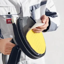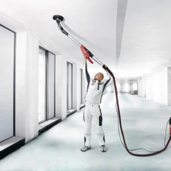 - Kardanisch gelagerter Schleiferkopf sorgt für hohe Flexibilität und optimale Anpassung beim Schleifen an Wänden und Decken.