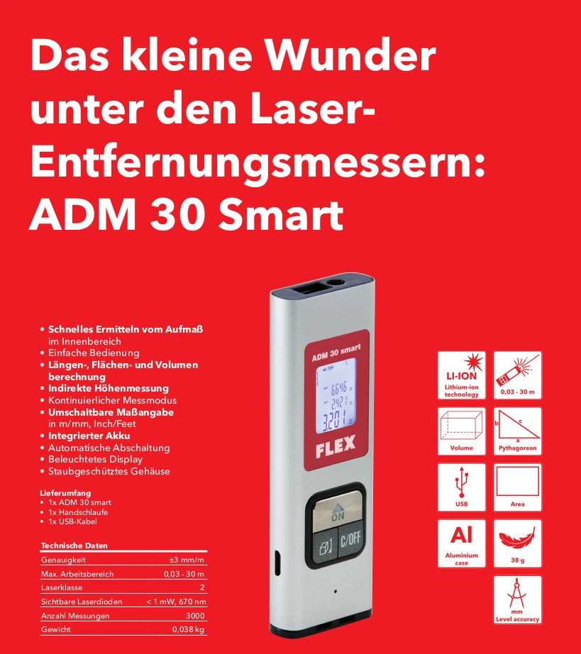 FLEX ADM 30 Smart Laser-Entfernungsmesser 504.599