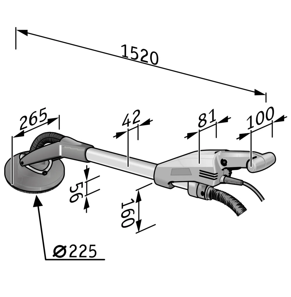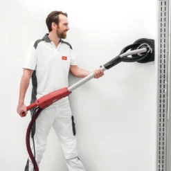 - Kardanisch gelagerter Schleifkopf sorgt für hohe Flexibilität und optimale Anpassung beim Schleifen an Wänden und Decken.