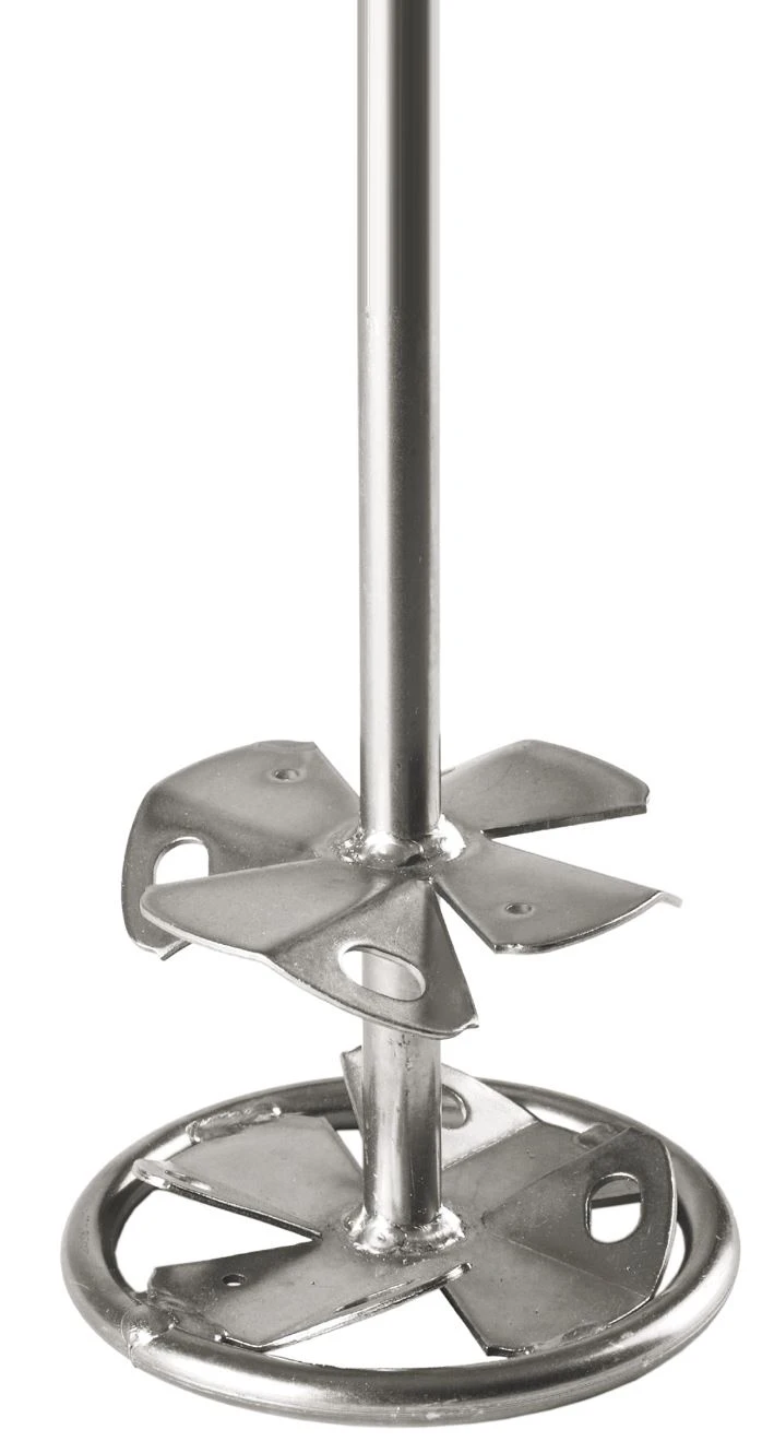 den Scheiben drücken das Rührgut gegenläufig nach unten bzw. oben. Ideal für flüssiges bis zähes Rührgut: Farben, Dispersionen, Kleister, Leim, Vergussmassen.