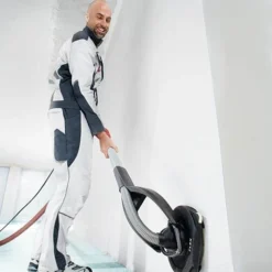 - Kardanisch gelagerter Schleiferkopf sorgt für hohe Flexibilität und optimale Anpassung beim Schleifen an Wänden und Decken.