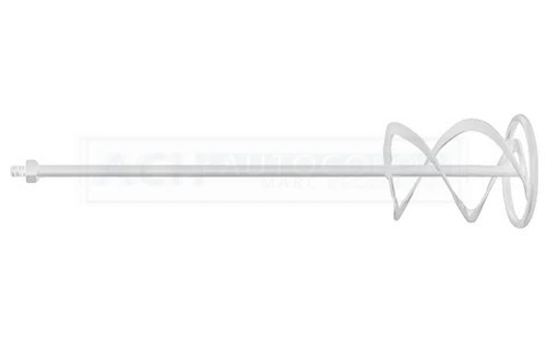 Mischwirkung von unten nach oben, Rührer schraubt sich selbst ins Material hinein, Ring wirkt schützend für den Behälter