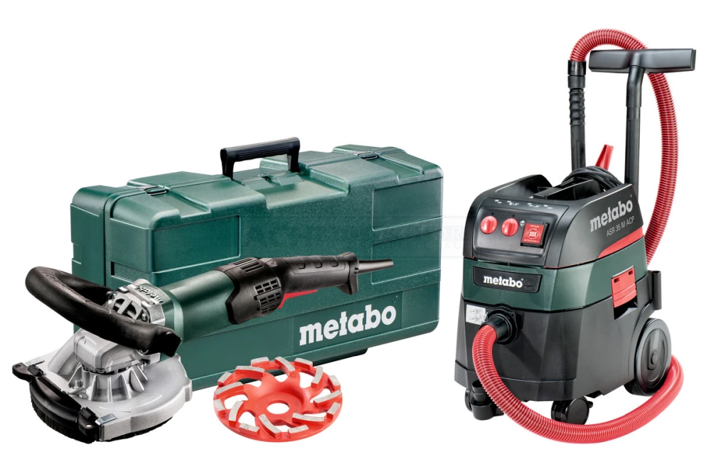 Kunststoffkoffer – Systemlösung zum Anschleifen von harten Materialien mit Diamanttopfscheiben mit wirkungsvoller Absaugung für optimale Arbeitsergebnisse Renovierungsschleifer RSEV 19-125 RT: Zum effektiven Anschleifen und Abtragen von Beton, Estrich und Beschichtungen mit Diamanttopfscheiben Allessauger ASR 35 M ACP zum Absaugen am Elektrowerkzeug im Dauereinsatz auf Baustellen und in der Werkstatt. AutoCleanPlus: Kosten- und Zeitersparnis durch automatische MPulse-Filterreinigung im Dauereinsatz Bei Unterschreiten der optimalen Saugleistung sofortiges Abrütteln der Filter. Besonders geeignet zum Absaugen von Beton- und Gesteinsstaub. Hoher Anwenderschutz: zertifiziert nach EU-Norm für Stäube der Staubklasse M Lieferumfang Renovierungsschleifer RSEV 19-125 RT: Diamanttopfscheibe Beton professional , Bügelgriff. Allessauger ASR 35 M ACP: Antistatik-Saugschlauch (Ø 35 mm, 4 m lang), Handgriff-Zwischenstück, Anschlussmuffe Ø 41/48 mm, 2 Saugrohre aus Kunststoff, 2 Polyester-Filterkassetten (Klasse M), PE-Filterbeutel, Fugendüse, Bodendüse (300 mm breit)