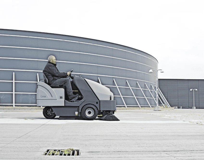 - Die SR1601 Aufsitzkehrmaschine ermöglicht hervorragende Staubkontrolle dank des Dustguard™ Systems. Weniger Staub bedeutet weniger Reinigungsaufwand an anderer Stelle. Exzellente Produktivität dank der großen 900 mm Hauptkehrwalze, insgesamt 1600 mm Kehrbreite und die zuverlässige, robuste Konstruktion gewährleisten ein schnelles und gründliches Ergebnis.