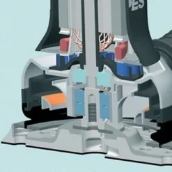 Verbessert die Stabilität des Geräts während des Betriebs durch Vermindern der Vibrationen an der senkrechten Achse der Arbeitsoberfläche. Der Staubschutzschirm bietet auch bei anspruchsvollen Anwendungen maximalen Schutz und höchste Zuverlässigkeit.